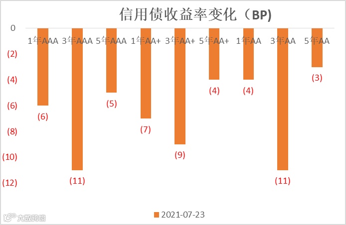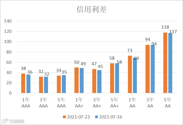 信用利差方面, 1 年期 AAA和 AA 等级信用利差走扩2~4bp。