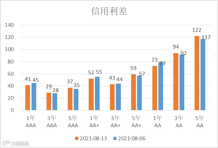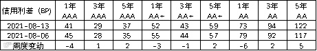 信用利差方面, 由于中长期信用债利率上行更多,因此3年期及5年期各等级信用利差均走扩。