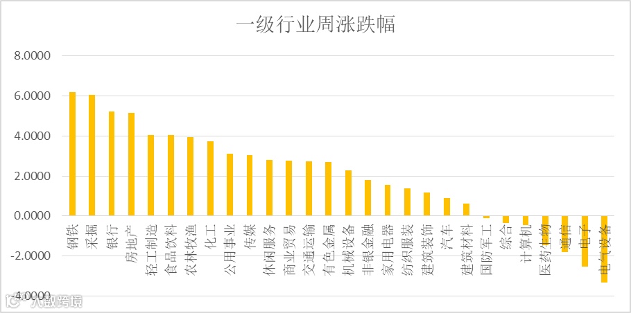 全球市场观察。上周欧美主要经济体股市也呈震荡趋势,美国纳斯达克下跌0.09%,标普500上涨0.71%。德国DAX上涨1.37%、法国CAC40上涨1.16%,富时100上涨1.34%。亚洲市场普遍上涨,日本日经225指数上涨0.56%,香港恒生指数上涨0.81%。