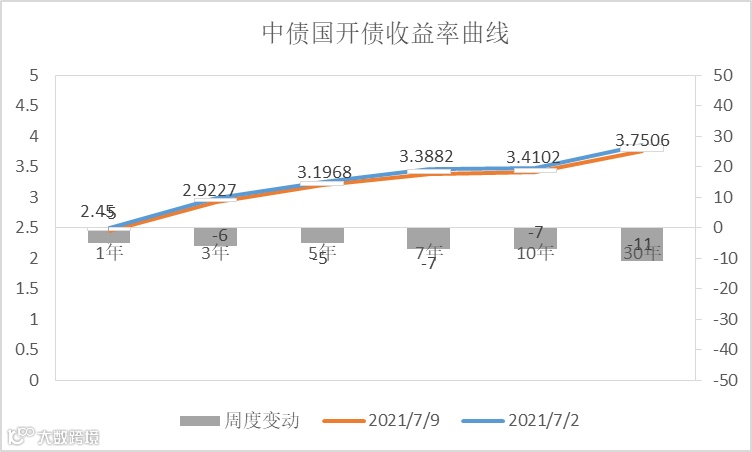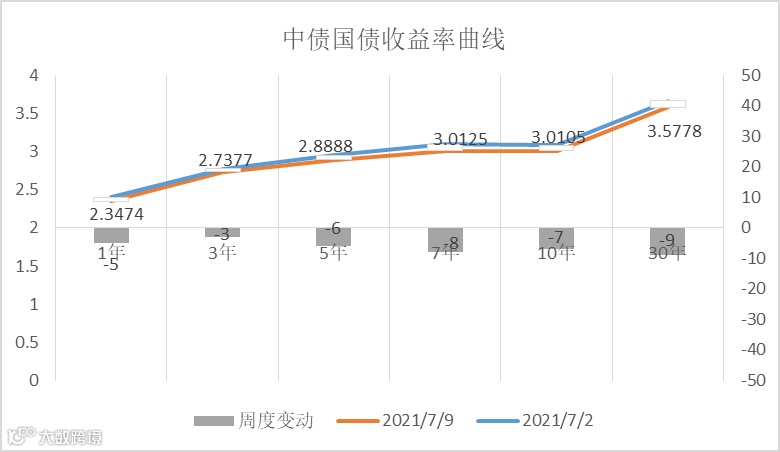 由于央行公布将于 2021年 7 月 15 日下调金融机构存款准备金率,10年期国债收益率迅速下行至3.0105%。