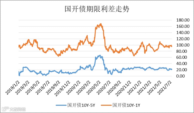 因长端利率下行明显,10Y-1Y及10Y-5Y利差有所收紧。