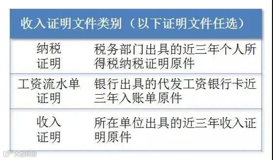 收入证明主要就是工资(银行工资流水或单位开具的收入证明)、纳税证明,各项证明文件任选一个即可。