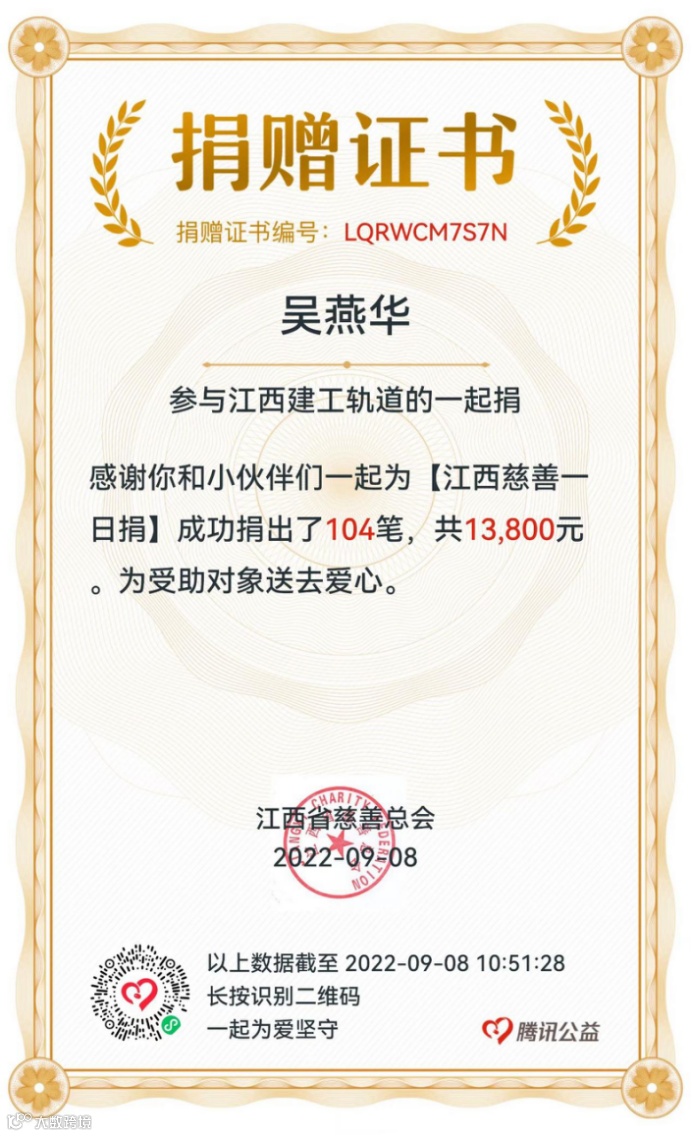 慈善捐款传递温情力量。近日,公司以“99公益日”为契机,积极响应省总工会、集团工会的号召,组织开展了2022年线上“慈心一日捐”活动。