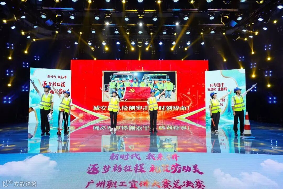 比赛当日,广州广播电视台演播厅内座无虚席,全市各界职工代表汇聚一堂,共同期待这场“劳动者的讲述”。当道路研究院宣讲团队身着统一检测工装、肩挎应急检测设备登场时,整齐的着装、专业的气场瞬间吸引全场目光,为宣讲拉开了“沉浸式”的序幕。