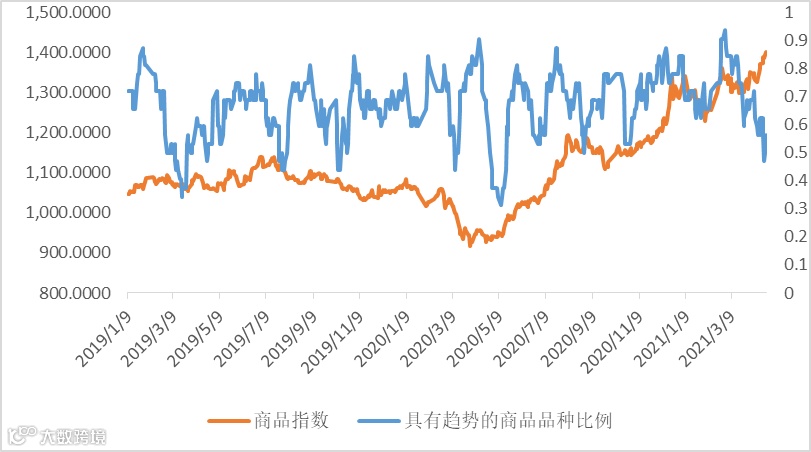 商品策略。具有趋势效应的商品下降至56.25%左右,商品指数继续走高。目前是配置CTA策略的较好时机。