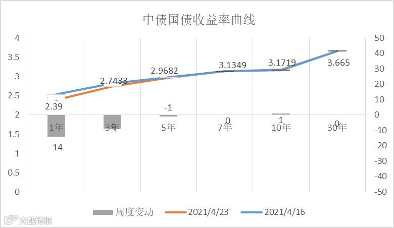 本周短期国债、国开债利率明显下行,中长期国债、国开债利率维持稳定。10年期国债收益率维持在3.665%。