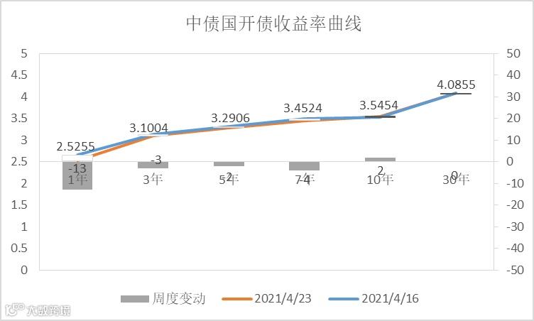 上周短期国开债利率下行较多,10Y-1Y期限利差大幅走阔。