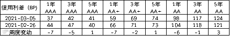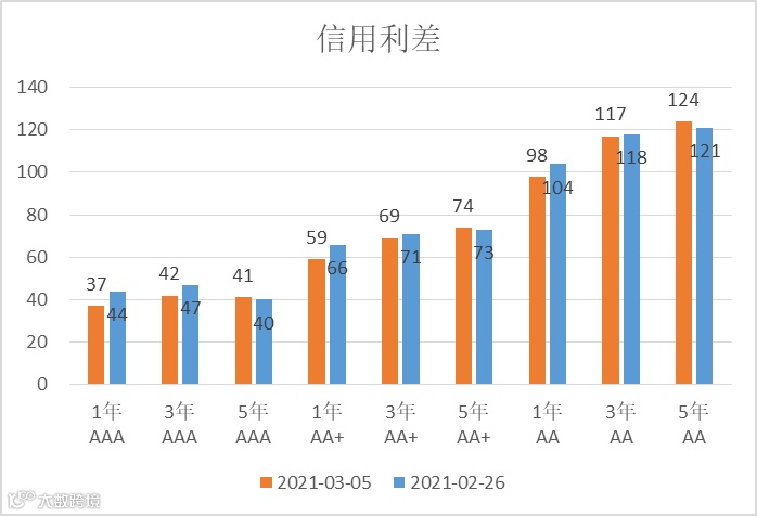 上周各等级信用利差继续压缩。