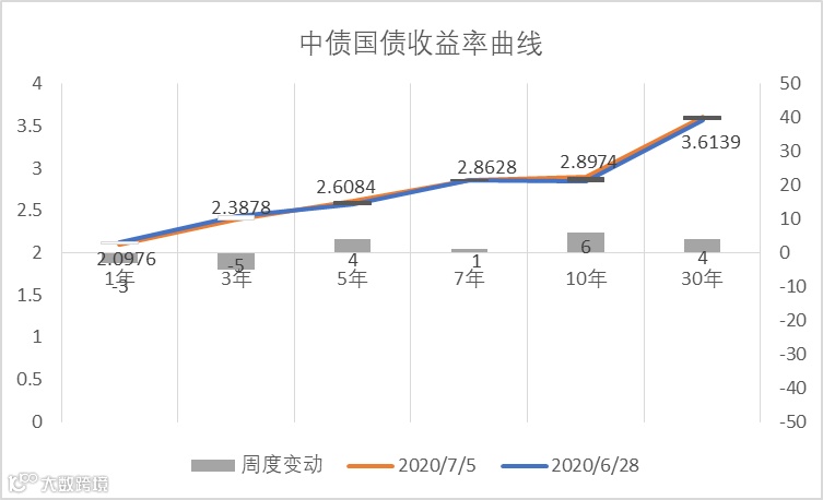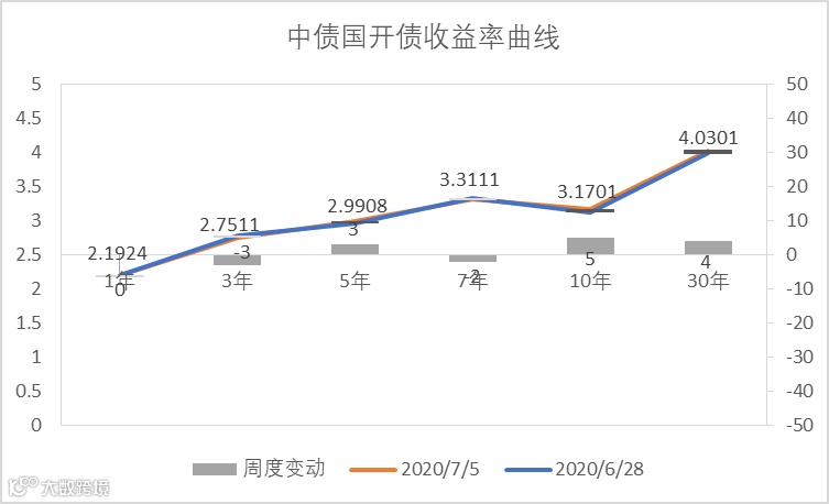 上周各期限国债收益率变动分化,1-3年期短端国债收益率小幅下行,10年期和30年期长端国债收益率小幅上行,10年期国债收益率收报2.8974%。