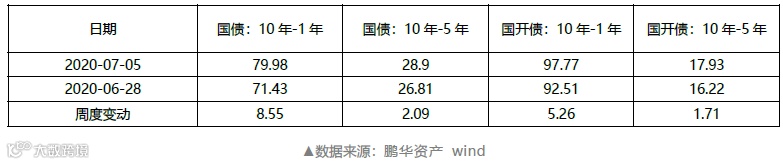 债券市场综述:上周央行公开市场共有4900亿元7天、14天逆回购资金到期,因月初资金回归充裕,央行上周无公开市场投放操作,全周累计净回笼4900亿元。7月初银行间资金面充裕,上周银行间、交易所7天、14天资金利率均在2%以下区间。R001加权收报1.41%,R007加权收报1.86%。上周债市表现较为平稳。各期限国债收益率变动分化,1-3年期短端国债收益率小幅下行,10年期和30年期长端国债收益率小幅上行,10年期国债收益率收报2.8974%。上周国债和国开债收益率期限利差小幅走扩。各期限、等级信用债收益率小幅下行。上周美债期限利差仍维持在历史低位水平;中美10年期国债利差保持在220BP的历史高位水平。
