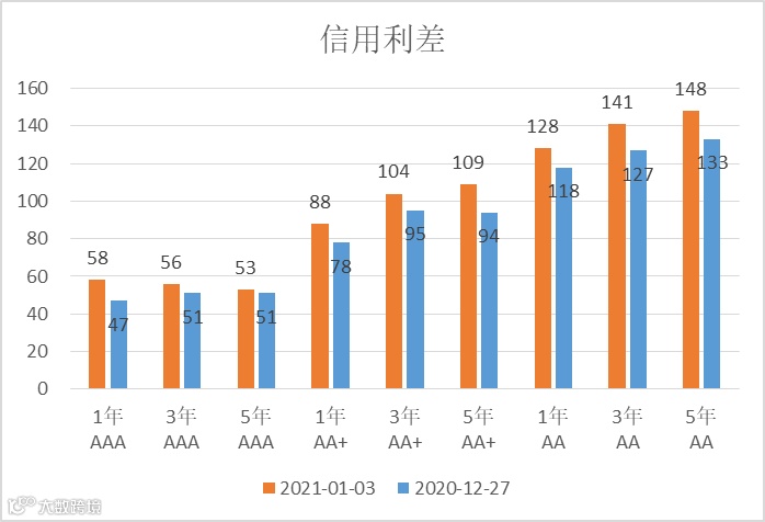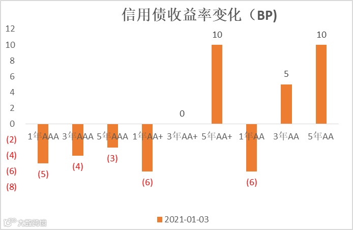 信用债方面,高低等级信用债收益率产生分化,高等级信用债收益率下行,AA级信用债收益率下行。