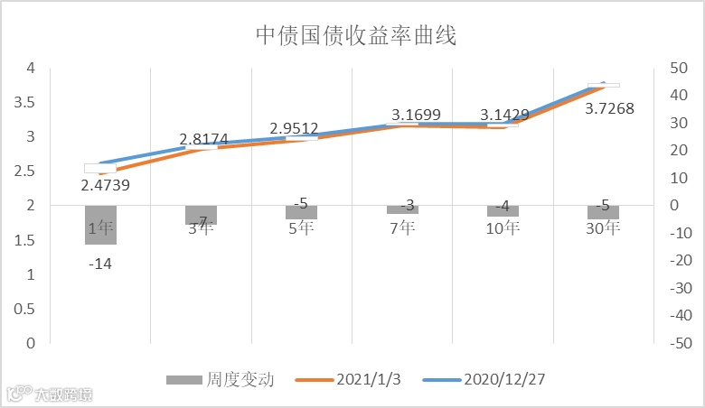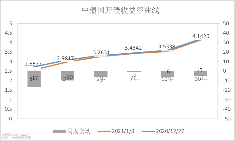 上周各期限国债、国开债利率普遍小幅下行, 10年期国债收益率下行至3.7268%。