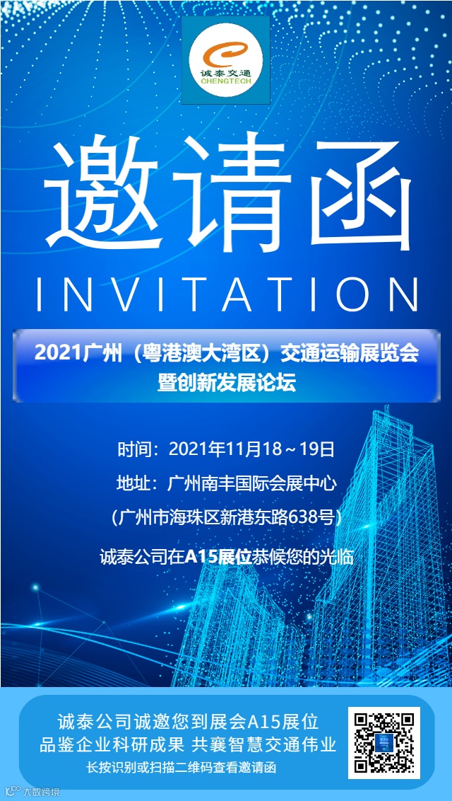 2021年11月18~19日,2021广州(粤港澳大湾区)交通运输展览会暨创新发展论坛将在广州南丰国际会展中心举办。广州穗路交通科技有限公司所属广东诚泰交通科技发展有限公司将携十余项交通科技领域自研成果重磅参加本次展会,全面展现其“机电+研发”双引擎驱动、以强劲实力为智慧交通赋能的卓越风采。
