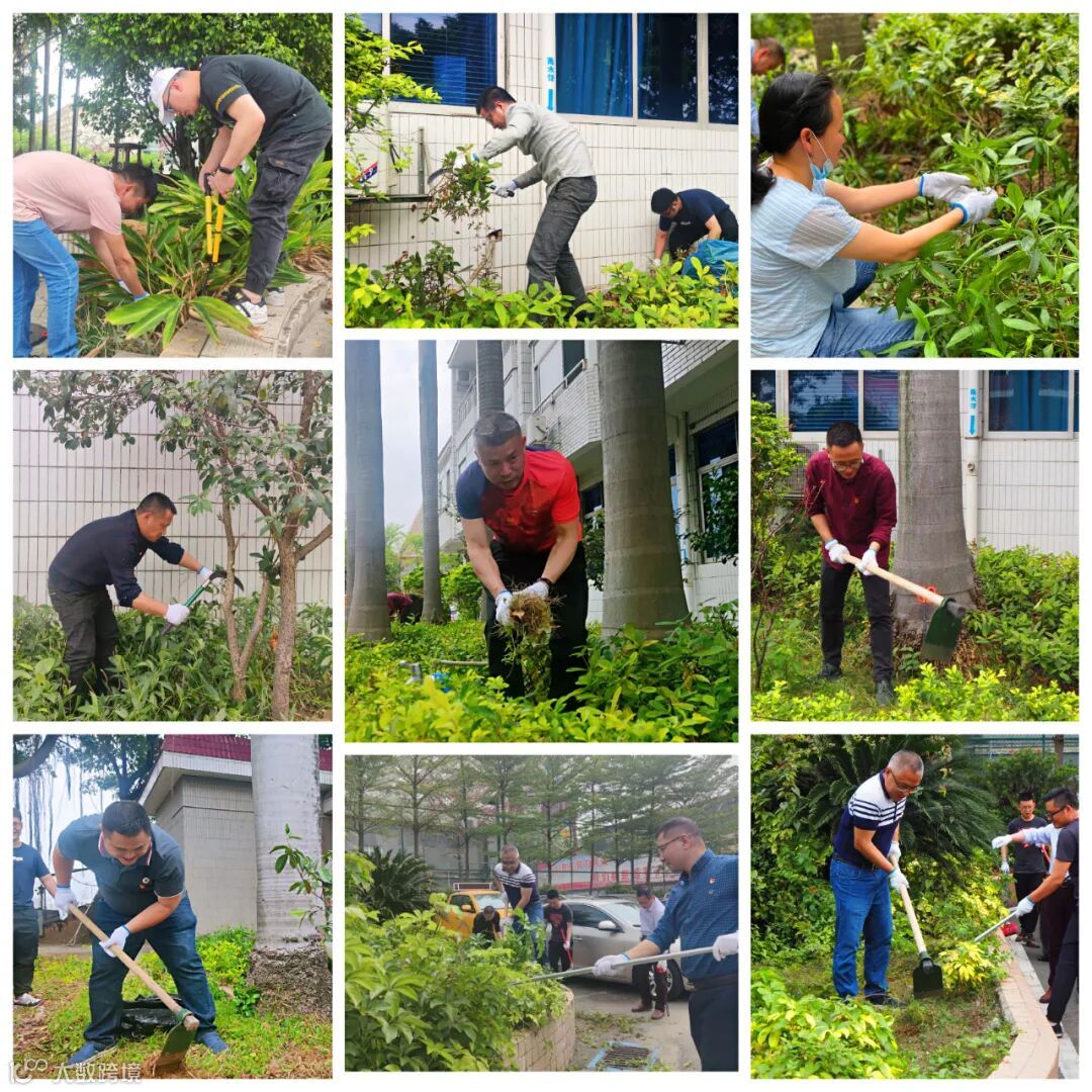 同时,参与志愿活动的党员、团员、群众职员工对办公园区的环境进行了美化,清除了园区停车场、喷水池、篮球场等区域的杂草、杂物,并对园区内植物进行了修剪。