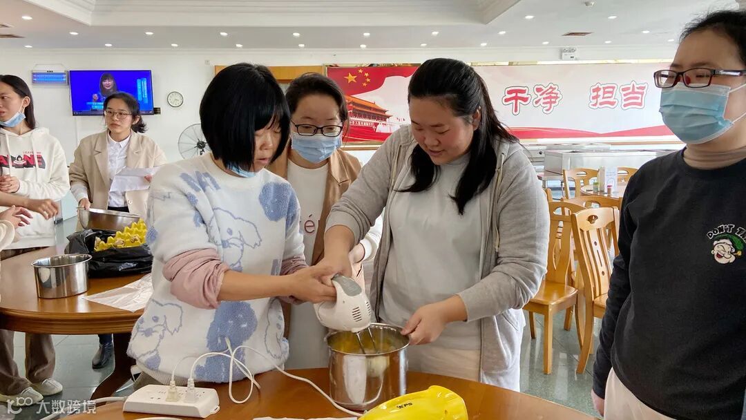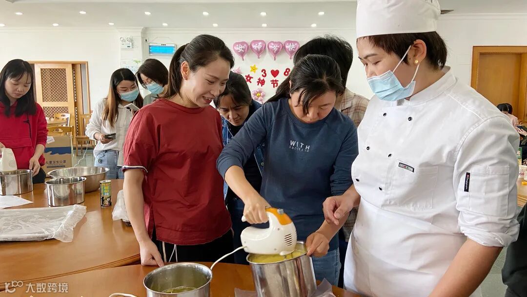 在欢声笑语中,下一场西点烘焙体验活动又开始了。现场烘焙工具和原材料一应俱全,女员工们个个都兴奋不已,跃跃欲试。在点心师傅的悉心指导下,大家撸起袖子,尽情展示自己超强的动手能力,分组制作美味的虎皮蛋糕卷。只见有的负责敲打鸡蛋,有的在搅拌面糊,个个忙得不亦乐乎,场面十分热闹。在一番兴高采烈的“折腾”后,香气扑鼻的虎皮蛋糕卷在一双双巧手下诞生,满满的幸福感与成就感洋溢在大家脸上。