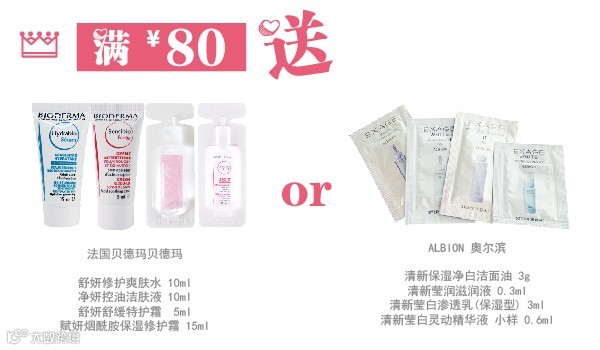即日起至3月8日,任意消费满80元,赠价值200元的奥尔滨体验4件套或贝德玛体验4件套!