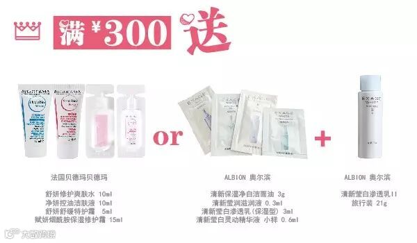 消费满300元,赠奥尔滨体验4件套+渗透乳旅行装21g!