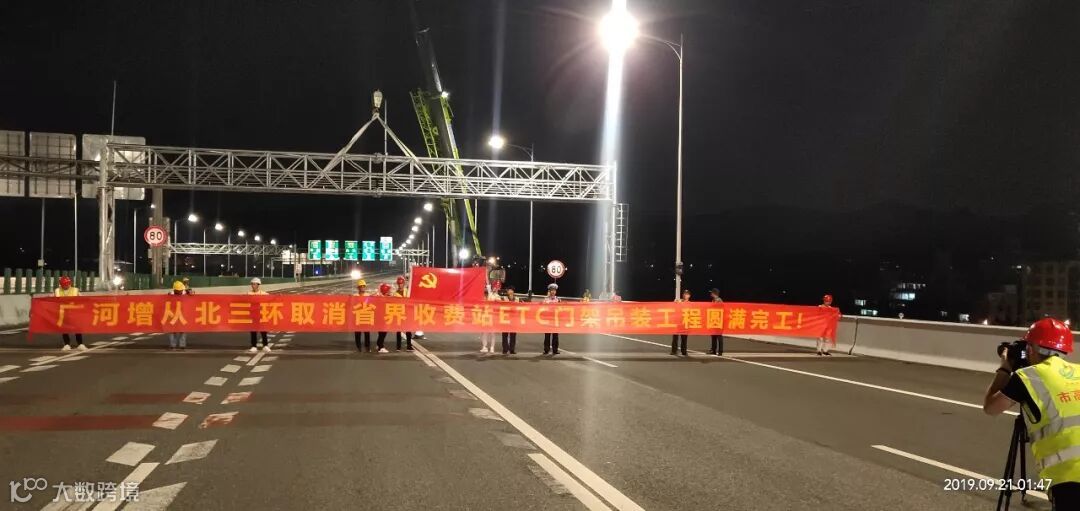 9月21日晚上10时,又一个ETC门架在广州珠江黄埔大桥完成吊装,标志着由广州市道路工程研究所所属诚泰公司负责的12条高速183个ETC门架施工全部完成,比原定计划提前9天。