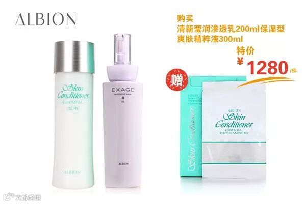 ALBION澳尔滨促销组合2(清新莹润渗透乳2号200ml保湿型+爽肤精粹液300ml+ 爽肤精萃面膜1片)