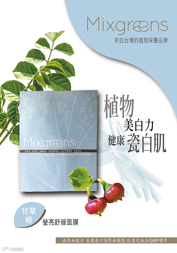 Mixgreen和草小屋是来自台湾的植物保养品牌,以天然、安全、有效著称,是一款完全无酒精、无人工香料和色素、无矿物油、无硅灵类物质、无苯甲酸酯类物质(人工防腐剂)、无激素、无荧光剂、无增稠剂的纯天然无添加面膜,即使敏感性皮肤和孕妇都可以放心使用。