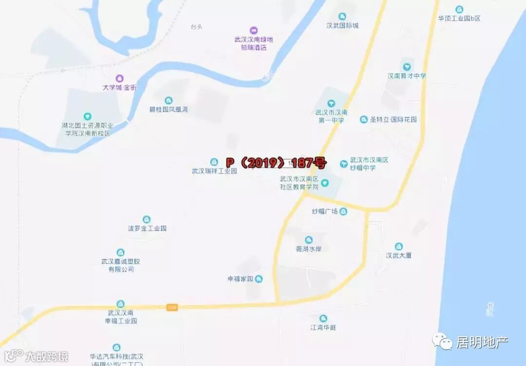 P(2019)187号:位于汉南区纱帽街月亮湾路以南,坛山路以东,土地面积82699.78平方米,纯住宅用地,容积率3,土地使用为住宅70年,现场挂牌出让,竞买保证金32874万元,起始价32874万元,出让最高价为55823万元,起拍楼面价约为1325元/平,最高楼面价约为2250元/平。