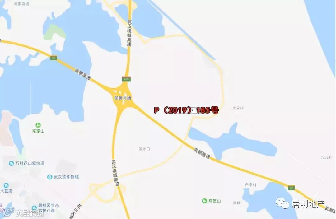 P(2019)186号:位于东湖新技术开发区花山大道以东、花城大道以北,土地面积11263.37平方米,纯商服用地,容积率2.5,建筑密度45%,土地使用为商服40年,现场挂牌出让,竞买保证金4792万元,起始价9583万元,未设置出让最高价,起拍楼面价约为3403元/平。