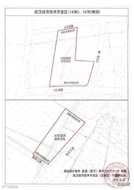 P(2019)188号:位于武汉经济技术开发区142R2、167R2地块,土地面积128128.98平方米,住宅、商服用地,容积率2.5,土地使用为商服40年、住宅70年,现场挂牌出让,竞买保证金50000万元,起始价92446万元,出让最高价为184889万元。起拍楼面价约为2886元/平,最高楼面价约为5772元/平。