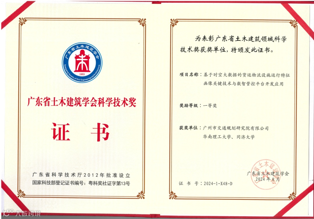 《基于时空大数据的货运物流设施运行特征画像关键技术与数智管控平台开发应用》