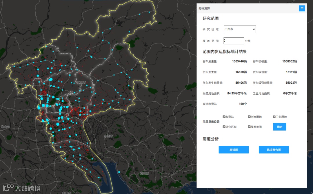 “推进运输服务与组织智能高效发展”是《交通领域科技创新中长期发展规划纲要(2021—2035年)》的优先主题,智慧货运物流作为其核心技术,将为城市货运的有序运行提供有力保障。项目组利用货运时空大数据及研究数据融合算法,重点针对货运物流设施运行特征进行研究分析,实现对重大枢纽货运交通特征提取,并对物流设施及产业用地的高精度、全样本、全方位量化评估,研发的高性能的货运分析引擎和数智管控平台,为企业、政府部门提供可视化的城市货运物流设施运行特征展示,辅助相关货运交通规划、建设和管理的全流程决策。