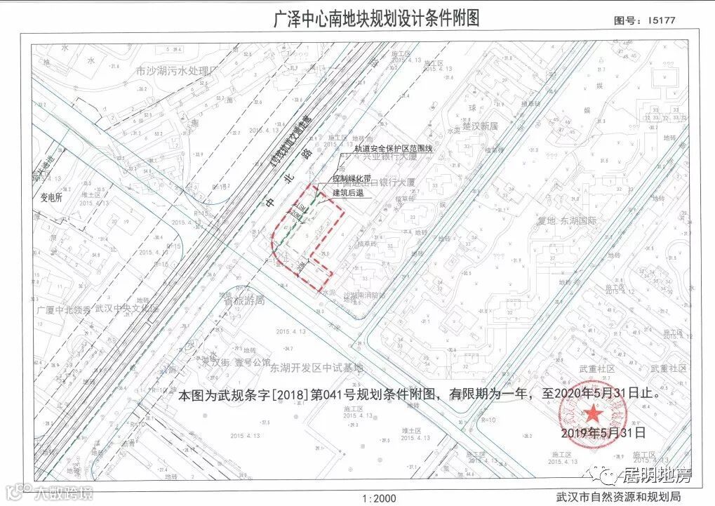 P(2019)152号:位于武昌区中北路与兴国南路交汇处,土地面积4818平方米,纯商服用地,容积率3.24,建筑密度35%,土地使用年限40年,现场挂牌出让,竞买保证金12480万元,起始价12480万元。起拍楼面价约为7995元/平。