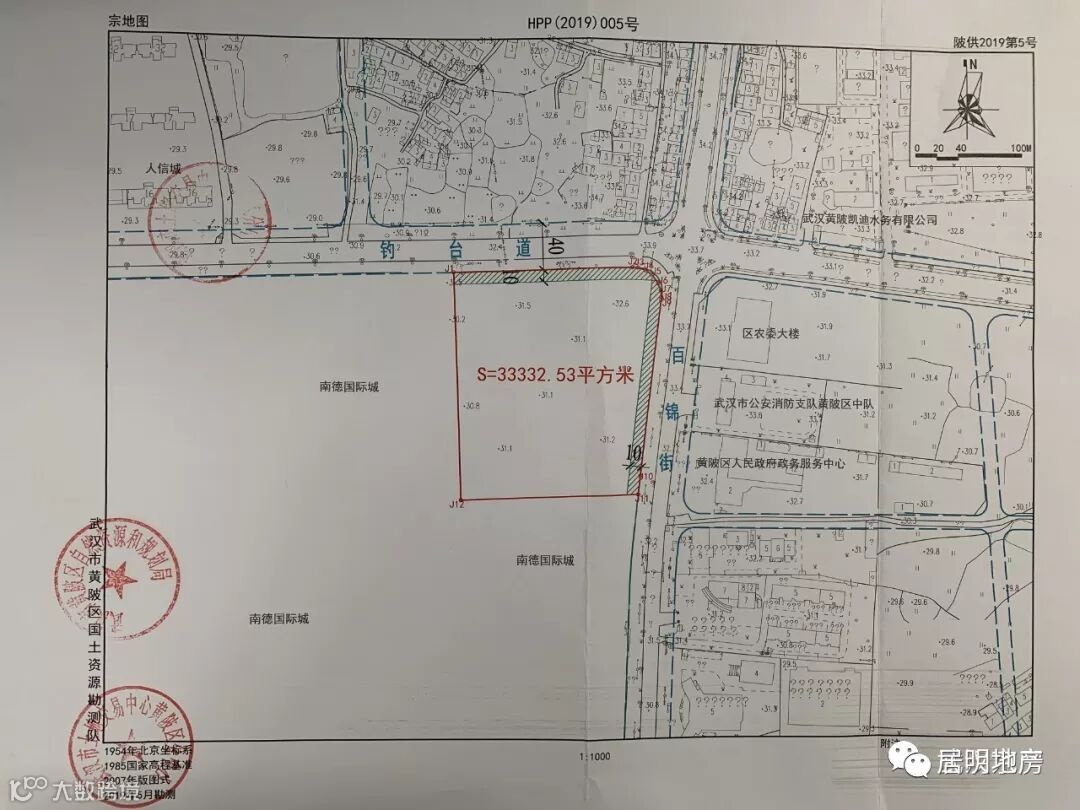 P(2019)146号:位于黄陂区黄陂区前川街钓鱼道以南、百锦街以西,土地面积33332.53平方米,住宅、公园与绿地用地,容积率1.0-3.3,土地使用年限70年,网上挂牌出让,竞买保证金19560万元,起始价32600万元,出让最高价59060万元。起拍楼面价约为2964元/平,最高楼面价约为5369元/平。