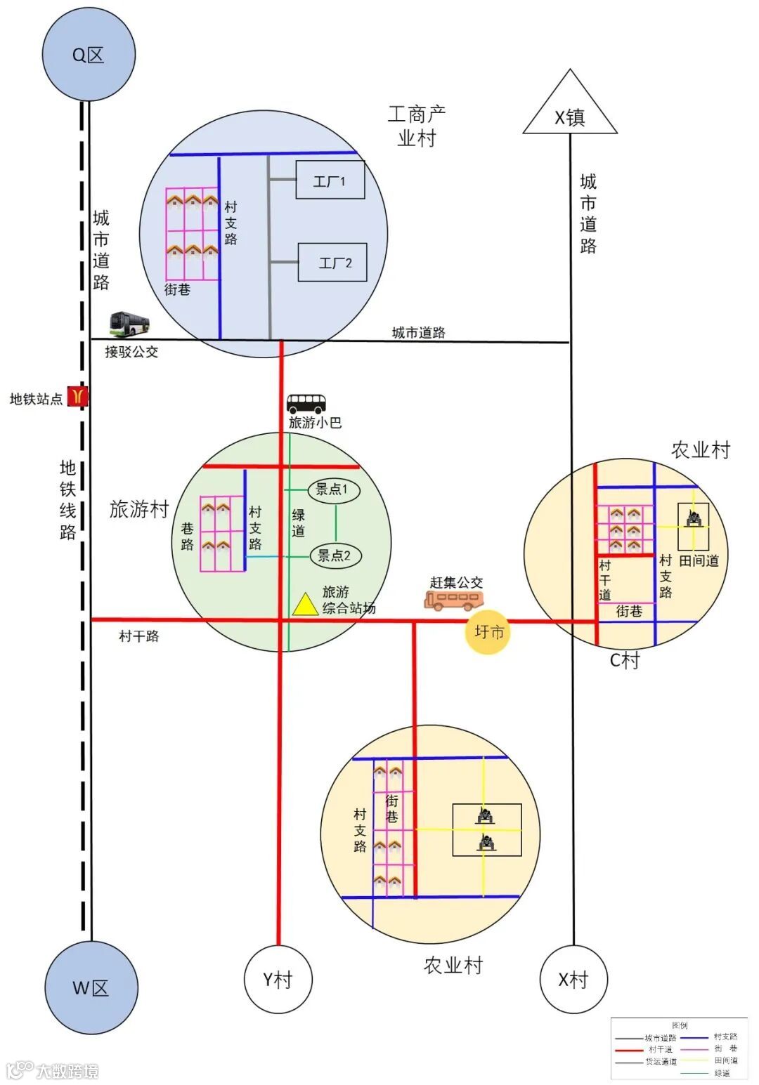 在超大型城市的供应逻辑中,镇一级可相对弱化,适当打破城—镇—村三级垂直结构关系,在村庄交通规划中打通城与村、村与村间的直接联系,并与城市规划协调互动。