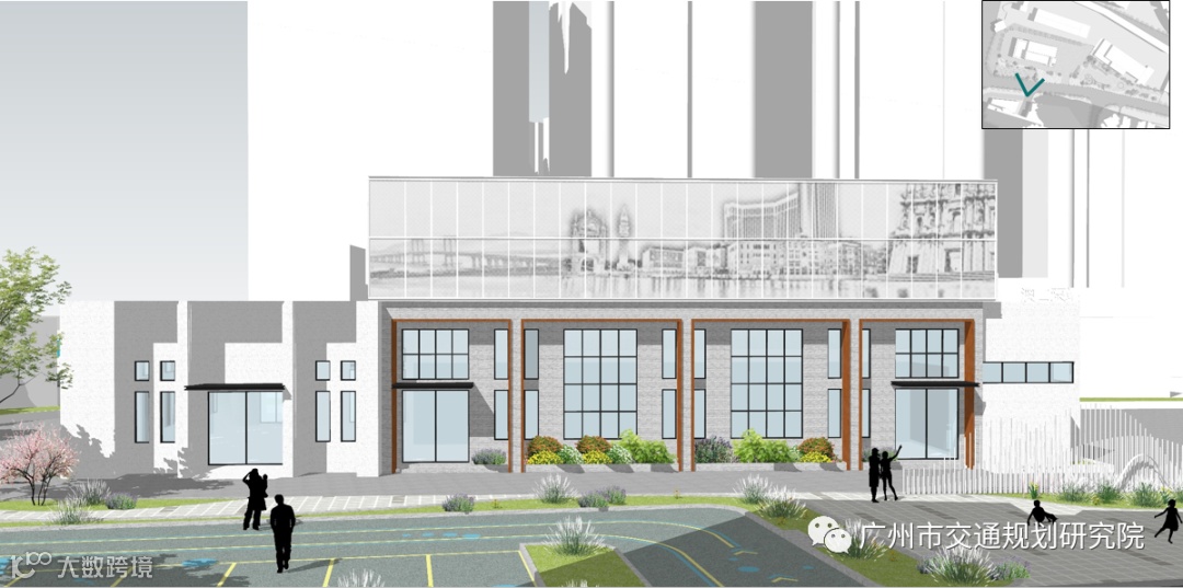 结合泵站处于的特定的街角位置节点,南北可串联居住社区、中小学,东西可与南岸路慢行空间及珠江滨江步道形成互动联系,通过打破澳口泵站的物理边界,释放泵站内的剩余空间,在满足泵站功能模块的前提下,营造一处开敞性的小尺度的可供周边居民活动的街角口袋公园。
