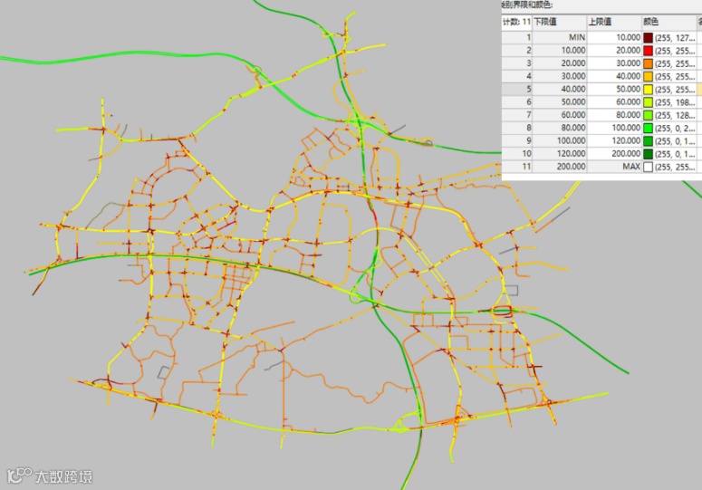 精细化:根据道路等级、速度、主辅道情况、有无分割设置77类道路类型,具有复杂网络的分析能力;依托导航地图,内嵌信号灯达到运营级交通分析能力;路口车道级组织配准,实现微观精细化的治理能力。