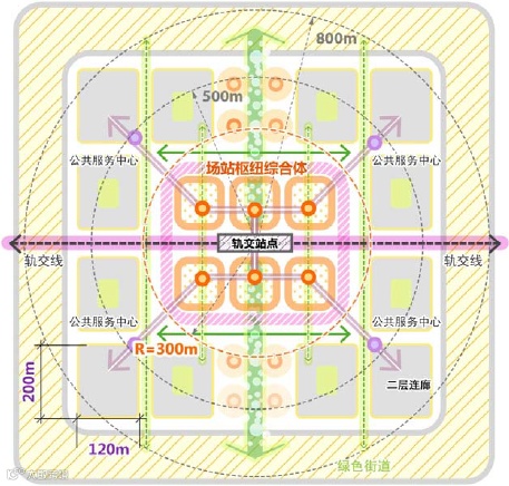 TOD(Transit-oriented Development)是指以大运量公共交通站点为核心,在其周边进行紧凑的、功能混合的、步行环境友好的高密度开发,用以促进城市集约效应发挥,鼓励绿色出行,推动营造健康和可持续发展的城市发展模式。通俗来说,就是结合公共交通,将住宅、商业、办公、公共服务设施、绿地开敞空间等功能复合集中于15分钟生活圈内,为附近居民、上班族提供便利使用公共交通或公共交通与私家车相互便捷转换的出行环境。
