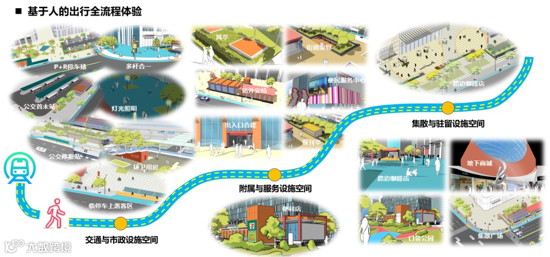 城市轨道交通站点周边五大设施空间示意图