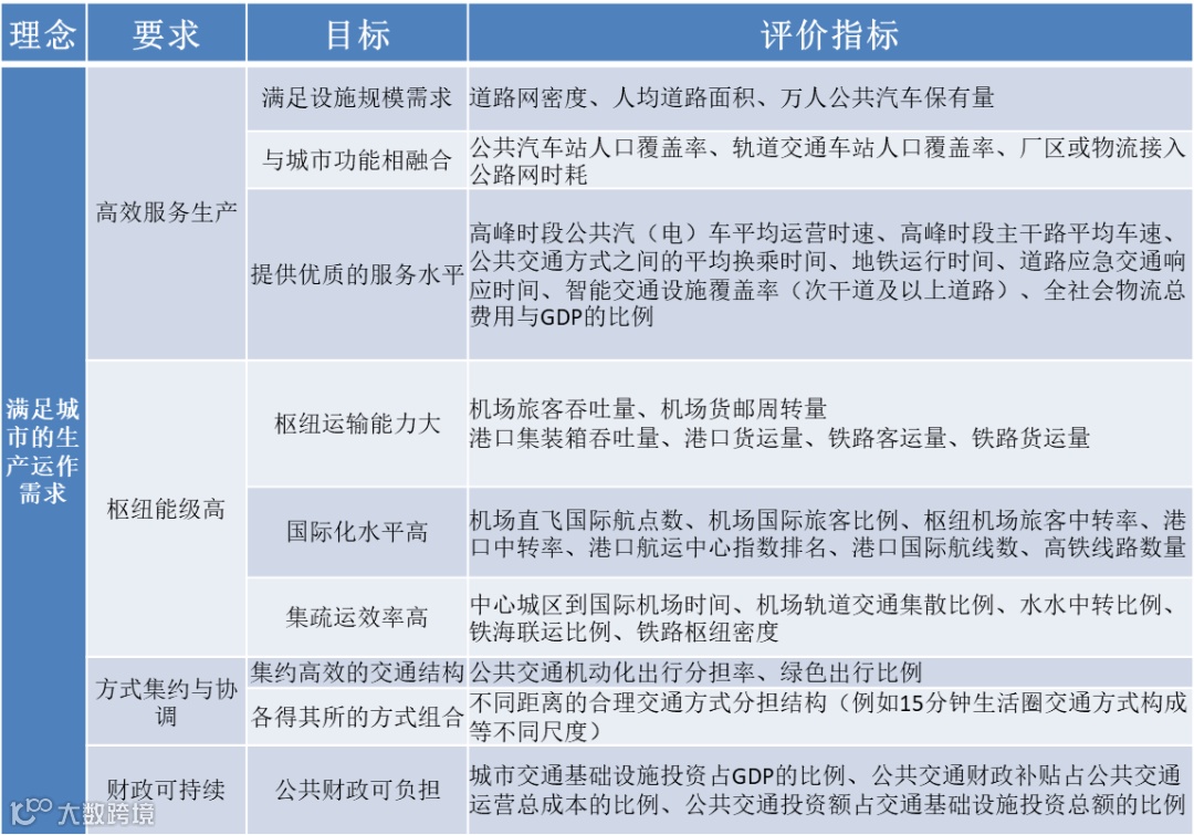 重点通过合理规模、功能匹配、服务到位三个方面体现。合理规模是指既要满足交通需求,又不至于资源过剩而形成错误引导;功能匹配指交通与城市三生功能的协同,包括围绕公共交通站点的职住布局、围绕干线路网的厂区或物流布局、围绕轨道交通快线的廊道整合等;服务到位指交通系统的服务质量,包括换乘水平、智能化水平、运营时速、应急响应时间等。