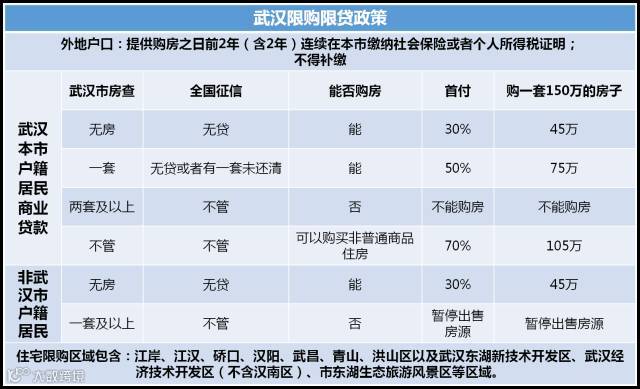 ①住房限购限贷范围:江岸、江汉、硚口、汉阳、武昌、青山、洪山区及东湖新技术开发区、武汉经济技术开发区(不含汉南区)、东湖风景区。