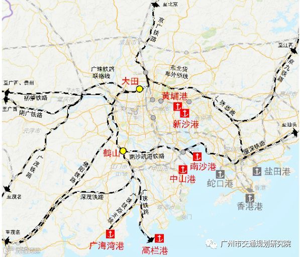 优化公铁联运、发展海铁联运,协调城市与货运站点的关系,加快推进广州集装箱中心站(大田)、南沙港物流基地、万顷沙物流基地、增城西物流就地建设,逐步取消棠溪、广州西站、石围塘等主城区站点货运功能。