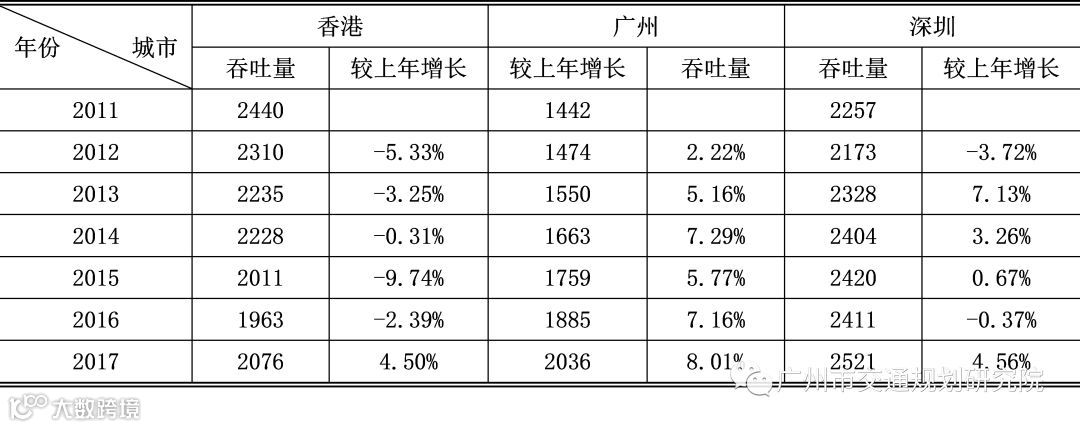 注:广州、深圳港口集装箱吞吐量数据来源于两市统计局网站。香港港口集装箱吞吐量数据来源于香港运输署网站公开数据