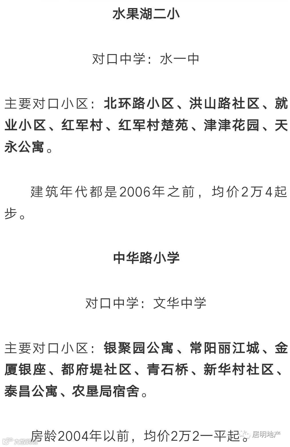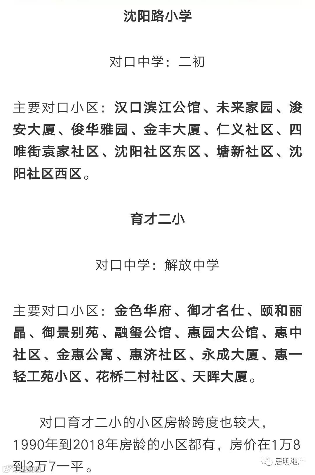 主要对口小区:主要对口硚北社区一带,都是房龄较老的房子,均价在2万3一平左右。