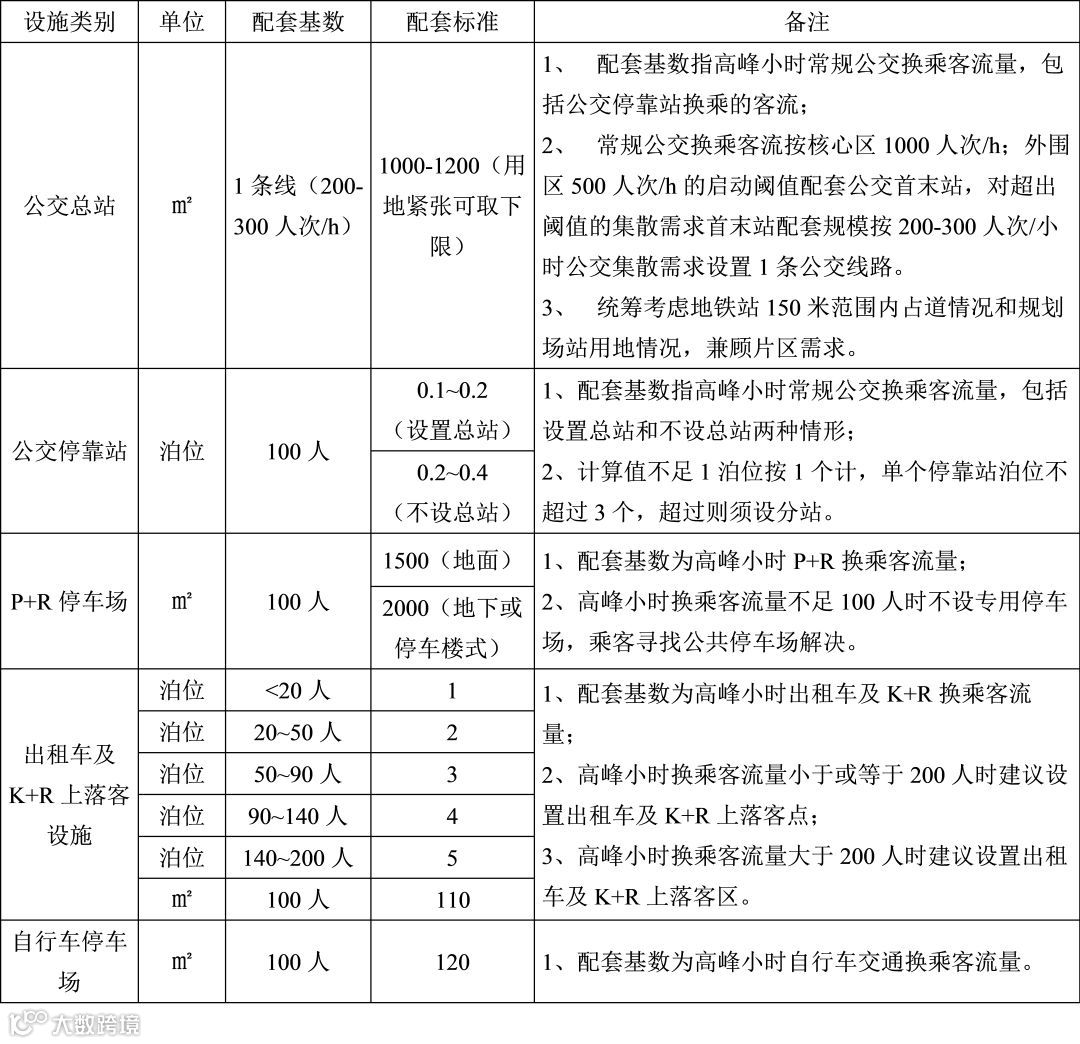 表2 交通衔接设施的配套标准