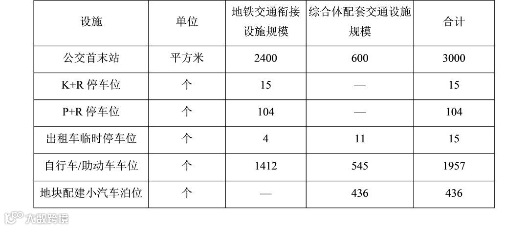 表3 交通衔接设施规模构成表