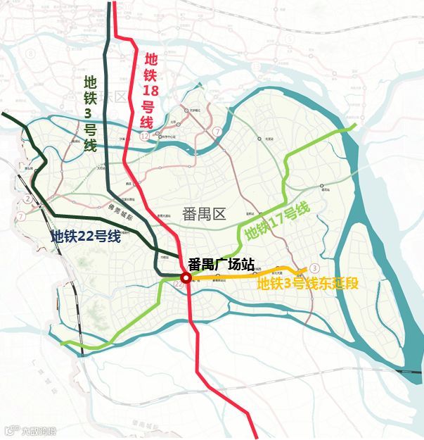 图2 番禺广场站与广州市轨道交通线网关系示意图