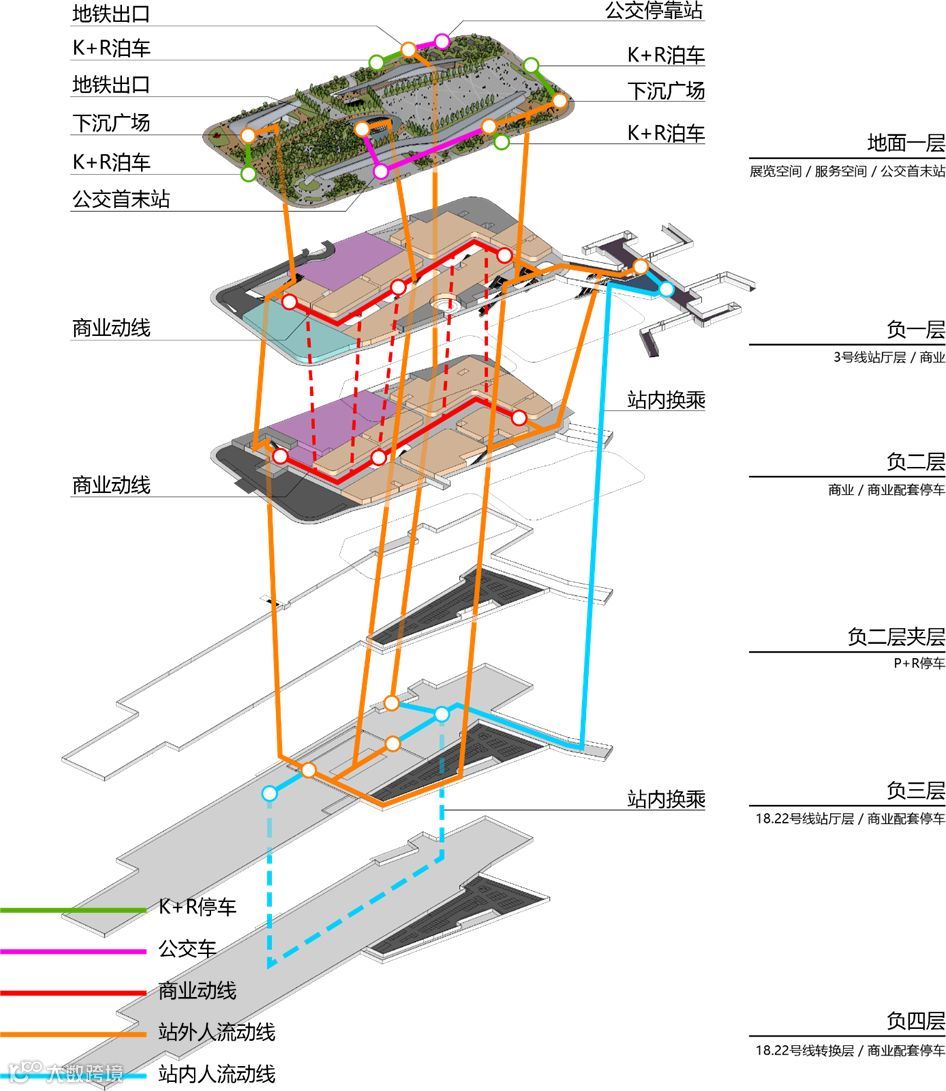 图9 场站综合体商业人流组织设计方案