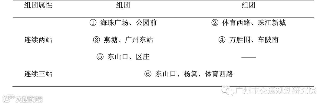 表1 连续换乘站组团