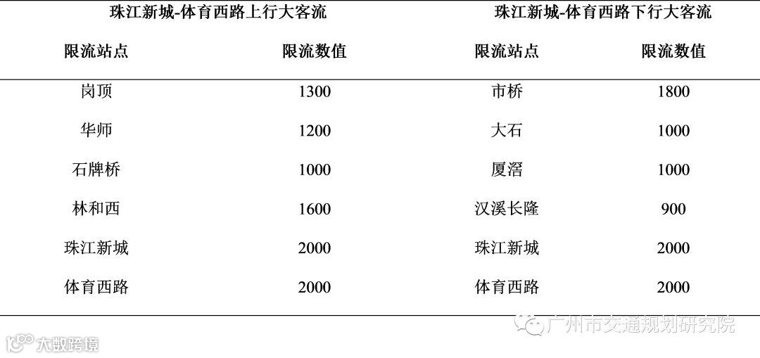 体育西路、珠江新城组团线控是指三号体育西路、珠江新城前任意一个站点出现大客流时,组团换乘站及三号线的联控站点采取客流控制措施限制进站客流量,缓解组团换乘站的客流压力,见表6。