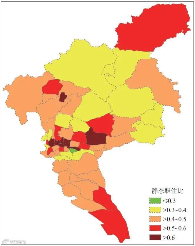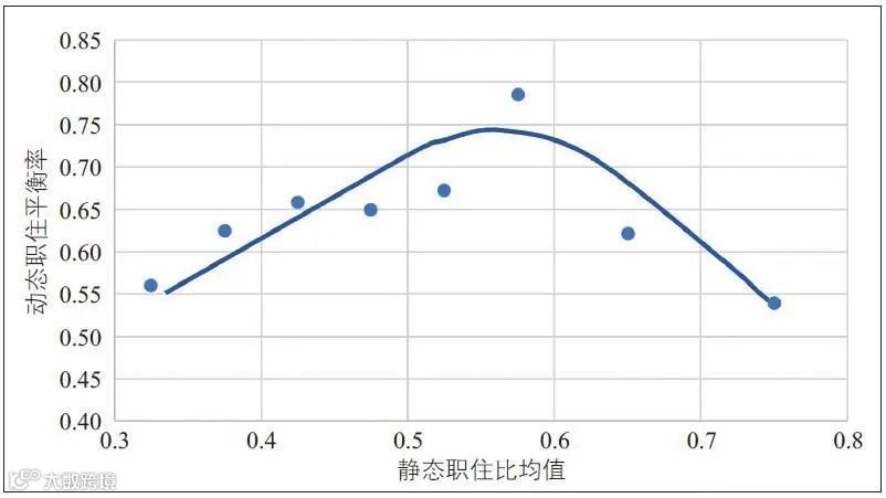 2)静态职住比并非越高越好,高职住比并不能带来高动态职住平衡率。