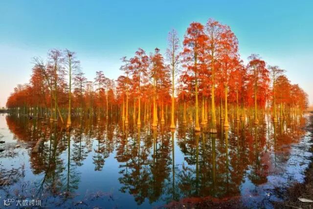 涨渡湖,光影交错,鸟儿翩飞,整个树林仿佛神仙居所。