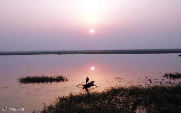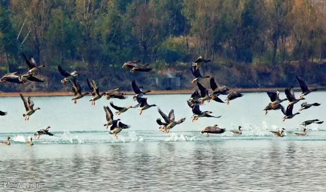 秋天的府河湿地,众鸟齐飞、水天一色。